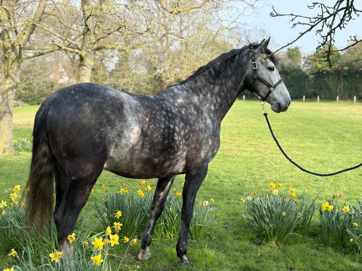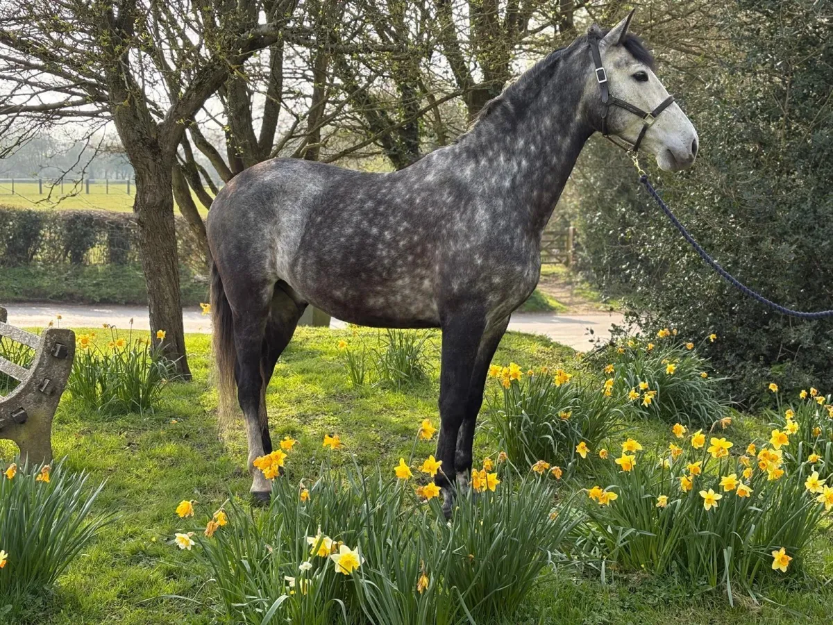 BIRMANO (ARMANI) WELL KNOWN ON THE CIRCUIT FOR WINNING ALL THE PRE CONFORMATION CLASSES, ARMANI WON THE ENGLISH RIDDEN SPANISH HORSE CLASS AT ROYAL WINDSOR INTERNATIONAL HORSE SHOW IN 2025. AND THE ANCCEE MORPHOLOGY IN THE SAME YEAR, AN ABSOLUTE GENTLEMAN, AND USED REGULARLY FOR ADVANCED SCHOOLMASTER LESSONS IN OUR SCHOOL OF EQUITATION. ARMANI HAS REPRESENTED GB 3 TIMES IN EUROPE, COMPETING AT ADVANCED MEDIUM LEVEL. HE REALLY DOES TAKE EVERYTHING IN HIS STRIDE.A VERY EASY HORSE